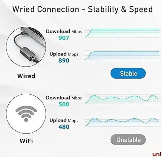 Secure & StableWired network is known as being securer and more stable than wireless connections, and uni's USB to RJ45 adapter is the perfect solution to maintain a safe and smooth network during online classes, video conferences, downloading large files, video streaming and gaming on your USB 3.0 devices. But Not Recommended for TV.