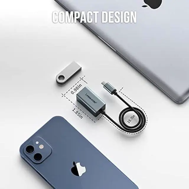 Compact Design & Portability Ethernet to USB C adopts a high-quality aluminum case, superheat dissipation capacity, Smaller than your finger ( 1.85 * 0.98 * 0.7 inches) and weighs almost nothing ( 1.18 oz), very portable, you can take it with you, ideal for business travel, office, entertainment other occasions.