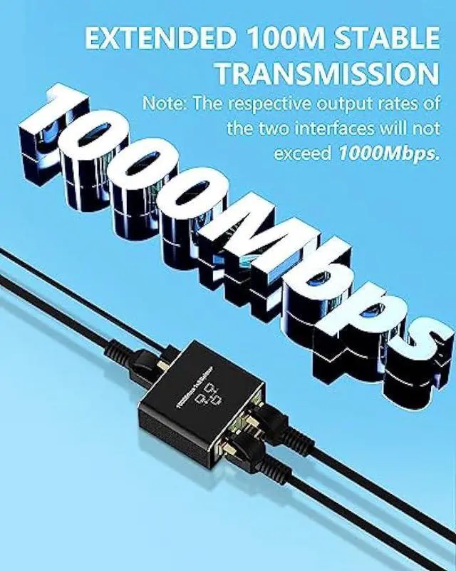 Gigabit 1000Mbps Transfer Speed: RJ45 Splitter Adapter 1 to 2 ways dual female port LAN ethernet cable, the speed of two cable group (1 and 2) can reach 1000Mbps. And the signal transmission of two cable groups will not interfere.
