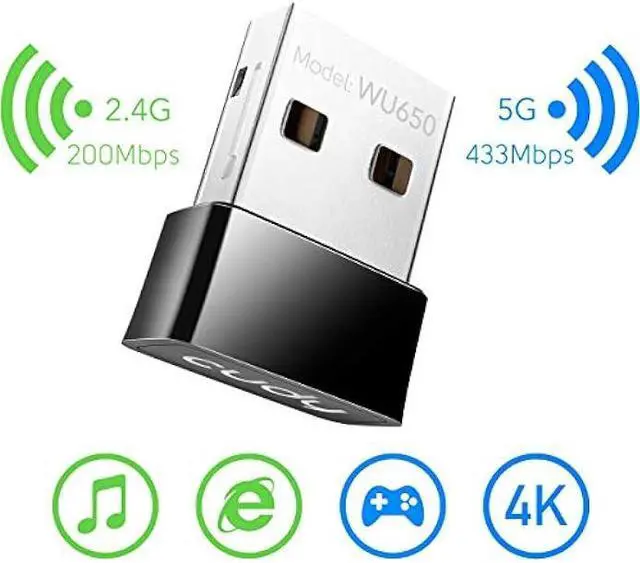 Upgrade to 433Mbps +200Mbps WiFi Speed. Combined with 802.11 ac technology, Cudy WU650 brings a 300% speed boost compared with other N150 wireless usb adapter on the market. The maximum speed reaches 433Mbps on 5GHz and 200Mbps on 2.4GH z, greatly improve the performance.