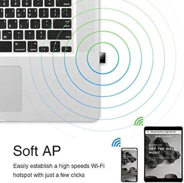 Soft-AP Mode. With Soft-AP mode, Wireless USB adapter WU650 can turn a wired internet connection to a PC or Laptop into a Wi-Fi hotspot, offer wi-fi signal to your mobile devices.