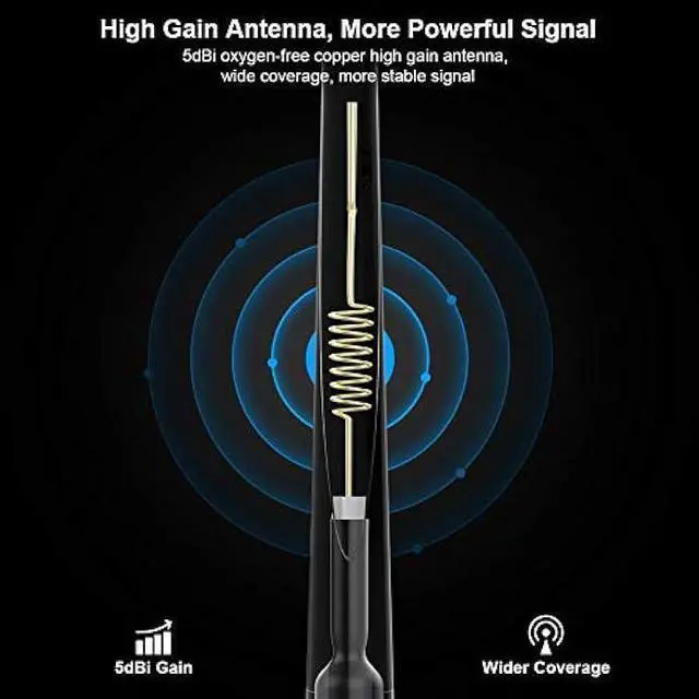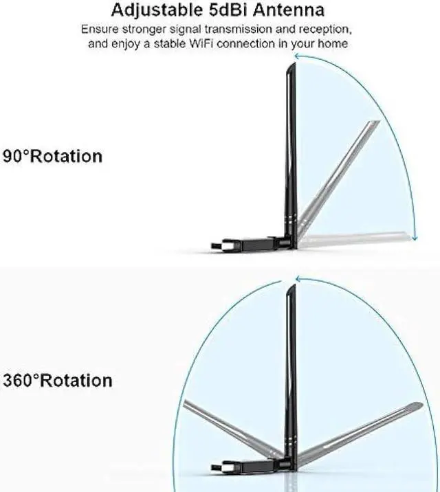 Fast USB WiFi adapterThe wireless usb adapter with the rotatable 5-dBi antenna, you can receive signals from any angle. Your device can access the latest dual-band WiFi router through this network dongle to connect faster and cover a wider range. WiFi speeds can reach 600 Mbps at 5 GHz (450 Mbps) or 2.4 GHz (150 Mbps).