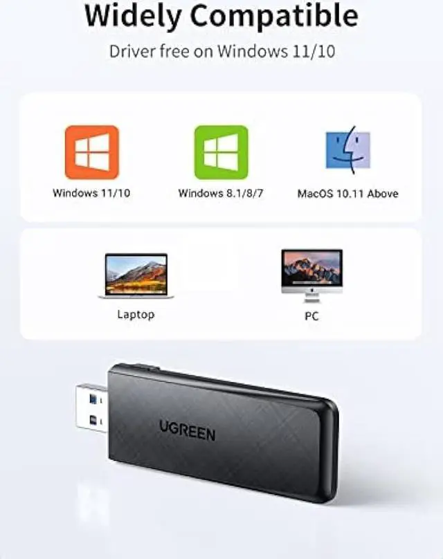 Widely Compatible: UGREEN WiFi Adapter for Desktop PC can support Windows 11/10/ 8.1 /8/7, and Mac 10.11 and above systems. Only Windows 11/10 can be used without the driver, other systems can easily install the driver through our instructions of User Manual. (Doesn't compatible with the Macbook with M1/M1 Pro/M1 Max Chip)