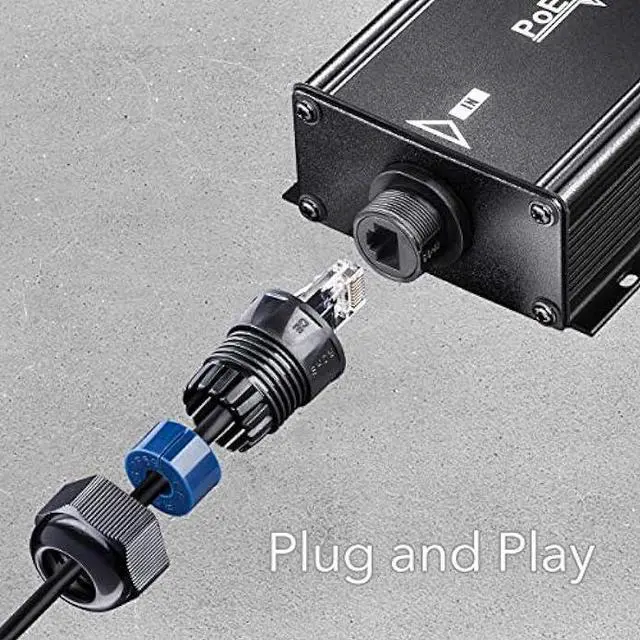 IP67 Waterproof, designed for outdoor use. The PoE Extender includes watertight connectors on the input and output ends. With Surge protection and working temperatures of -25°C to 55°C, it will withstand inclement weather. *DO NOT SUBMERGE OR BURY*