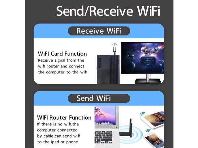 - [for sending and receiving wifi signal] This high gain wireless usb wifi 6 adapter can work as a wifi dongle card to receive the wifi signals or as a wifi router to sending the wifi signals to the phone,notebook. Compatible with windows 7/10/11,widely used for the hotel,school,office,hospital,home etc.