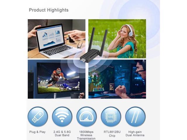 - [Wifi 6 AX1800Mbps Dual Band 5G/2.4G] 802.11ax USB adapter wifi 6 dongle, 5G wifi speed up to 1201Mbps,2.4 GHz up to 574Mbps at most.This wireless wifi 6 adapter for desktop pc, Provides long range, lag-free and stable WiFi signal connection to upgrade your PC.