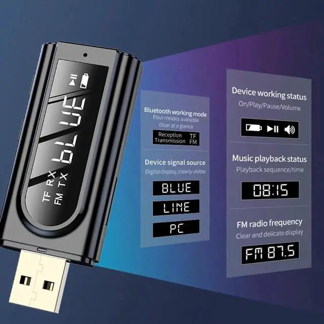 1. Adopt Bluetooth 5.0 chip, with LED digital display, the working status is clearly visible.