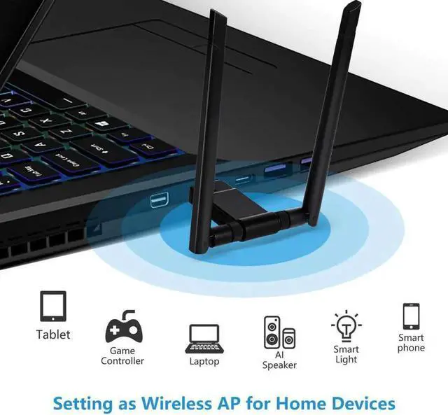 Wifi signal: high gain intelligent 360° detachable rotating antenna inside and outside. Greatly enhance the ability of wifi adapter to receive and transmit signals.