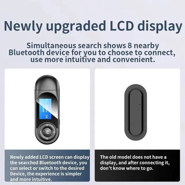 LCD DISPLAY DESIGN: The Bluetooth Transmitter&Receiver with a LCD display screen has come. You can have all the information of the wireless streaming status from a simple glance at the screen. It shows Bluetooth connection status.