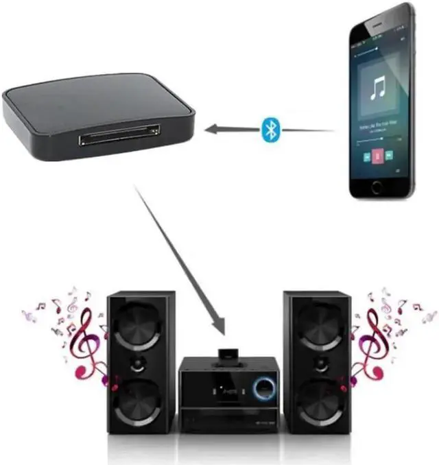 Turn your non-Bluetooth common speaker with 30-Pin connector into a wireless Bluetooth speaker, and freely enjoy your favorite songs (If it asks for a password, enter "0000"). Then you can liberate your iPod forever.