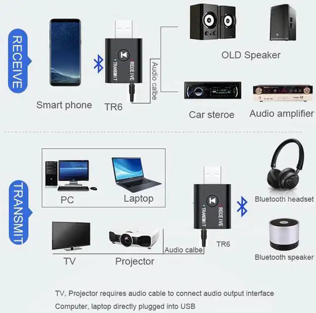 JAENFONG 5.0 Audio Receiver Transmitter 2 IN 1 RCA 3.5mm 3.5 Jack AUX Stereo Music USB Wireless Adapter for TV Car PC Speaker