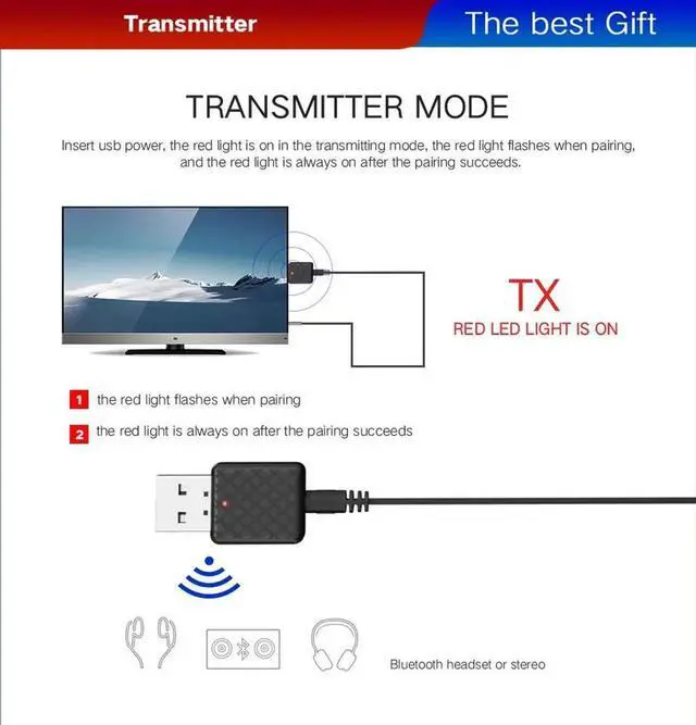 JAENFONG Bluetooth 5.0 Audio Receiver Transmitter Mini 3.5mm AUX Jack Stereo Bluetooth Transmitter For TV PC Wireless Adapter For Car