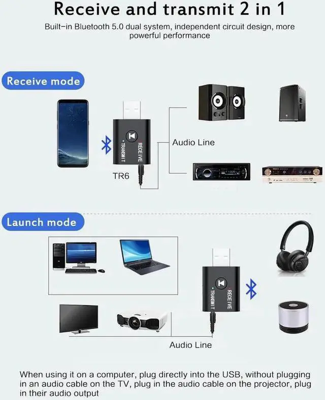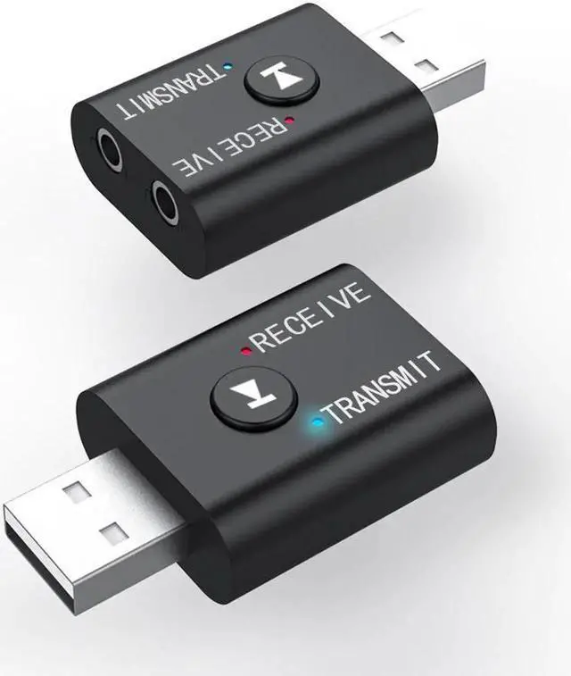 JAENFONG Bluetooth 5.0 Transmitter Receiver 3.5mm AUX USB Mini 2 in 1 Wireless Stereo Audio Adapter for Home TV PC Car Mp3/4