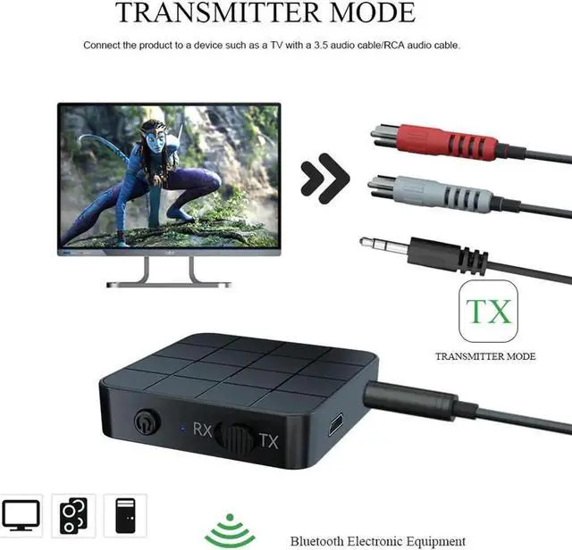JAENFONG 2 IN 1 Bluetooth 5.0 Audio Transmitter Receiver 3.5mm Wireless Adapter Stereo Audio Dongle For TV Car / Home Speakers