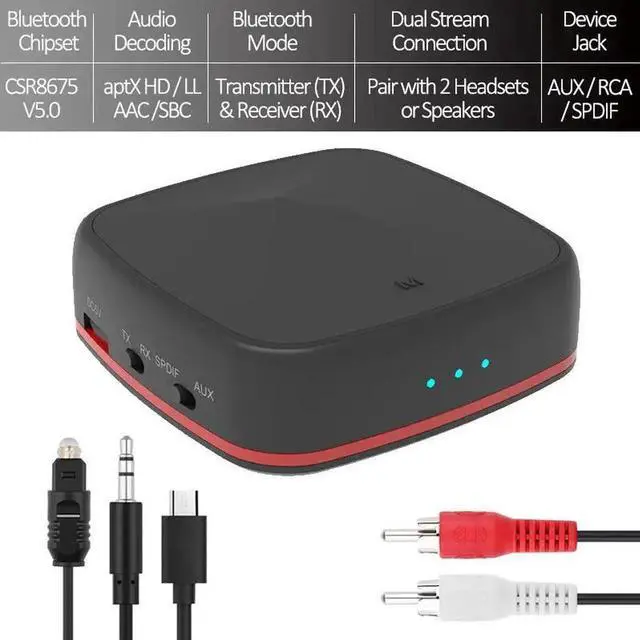 Transmitter -> Bluetooth-enable your TV, PC, AV receiver, TV Box etc. Stream audio to any Bluetooth headphones / speakers, e. g., Beats,, Plantronics, Boltune, headphones.