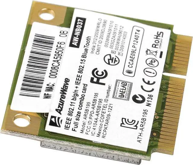 HP/Compaq/IBM/Lenovo/Thinkpad Type: AR9285 1x1 MIMO 802.11 b/g/n (150Mbps), AR3011 Bluetooth 3.0