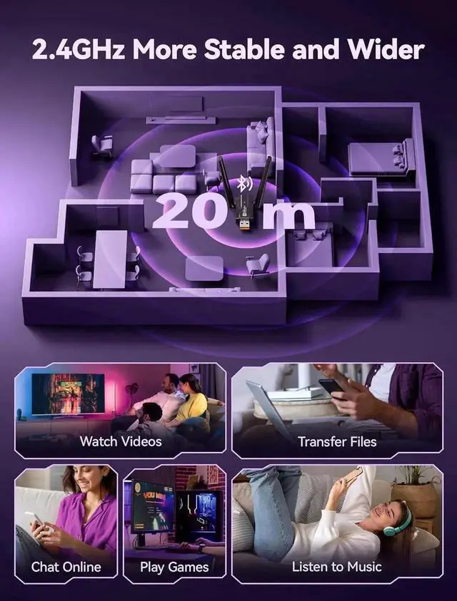 High Compatibility & Multiple Connections Compatible with Windows 11/10/ 8.1 /7 (Windows 7 requires driver installation), Linux and HomeAssistant. Up to 7 devices can be connected simultaneously, such as headphones, keyboards, mice and speakers.