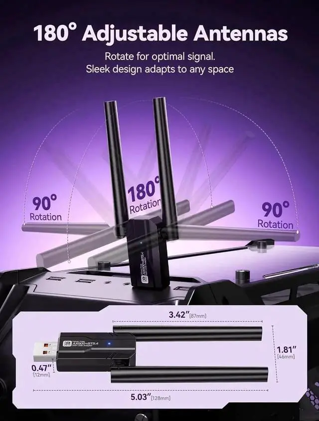 ROTATABLE ANTENNA FOR OPTIMAL SIGNAL QUALITY The antenna can be rotated vertically 90° and horizontally 180° to ensure the best signal transmission. It is also foldable and ideal for travelling.
