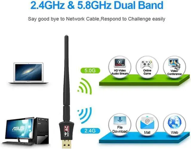 Wireless network adapter work for dual band 2.4Ghz 150Mbps & 5.8Ghz 433Mbps