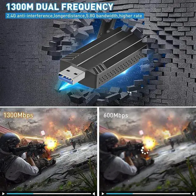 LAG-FREE & ULTRAFAST CONNECTIONS - Up to 1300Mbps WiFi speeds in 2.4GH z (400Mbps) and 5.8GH z (867Mbps) dual-band, reduce freezing and lags when streaming and gaming. Enjoy lag-free HD video and online games with ultra-fast AC1300 wireless adapter speed with 802.11 ac.