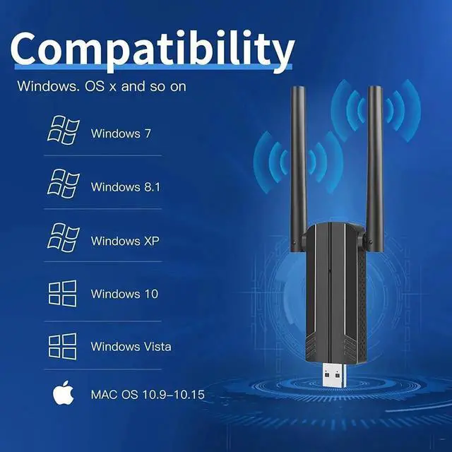 PLUG & PLAY - Just plug and play wireless WiFi USB adapter for desktop for Windows 10/11 (no drivers required), compatible with Windows 11 / 10 / 8 / 8.1 / 7 / Vista / XP, Mac OS 10.9 - 10.15.