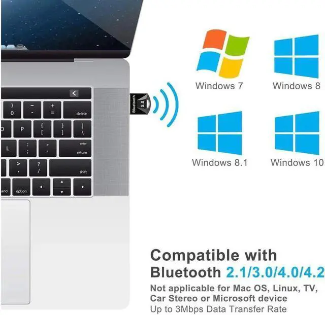 HIGH COMPATIBILITY: Bluetooth 5.0 dongle works with 32/64-bit Windows 10/8/7. It can also take full advantage of bandwidth to connect multiple Bluetooth devices simultaneously, such as Bluetooth headsets/speakers/mice/keyboards, smartphones. Can work with 7 devices at the same time. Not applicable for Mac OS, Linux, TV, Car Stereo.