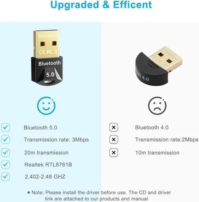 ADAPTER: Adapter applies the latest Bluetooth 5.0 +EDR adapter. With the enhanced Data Rate (EDR) support, Its greatly improved the data transmission rate, reaching 3Mbps. It is backward compatible with Bluetooth 2.1 / 3.0 / 4.0 / 4.2 Dual-mode Bluetooth transfer.