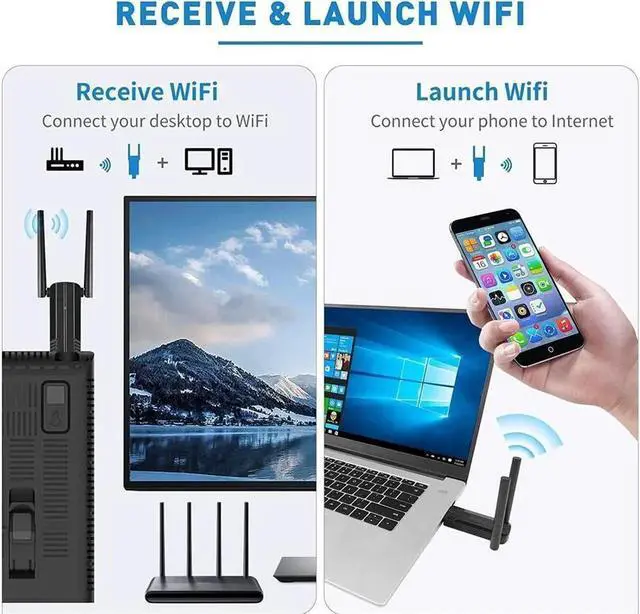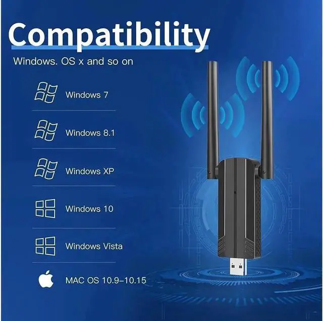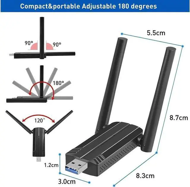 DUAL 5DBI HIGH GAIN ANTENNA - USB wireless adapter equipped with 5dBi dual antennas, 180°/90° angle adjustable, achieve stronger network speed, wider network coverage, more stable connection, stronger penetration and adapt to more environments.