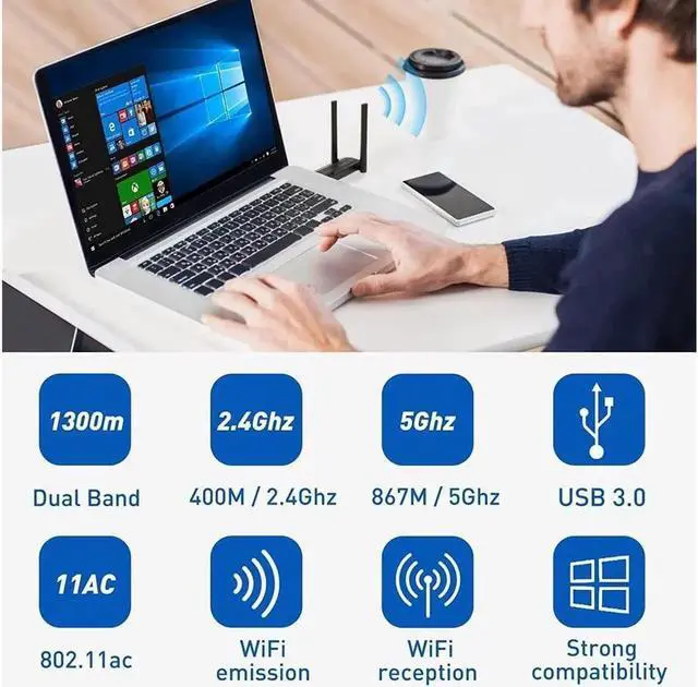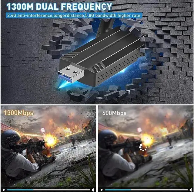 LAG-FREE & ULTRAFAST CONNECTIONS - Up to 1300Mbps WiFi speeds in 2.4GH z (400Mbps) and 5.8GH z (867Mbps) dual-band, reduce freezing and lags when streaming and gaming. Enjoy lag-free HD video and online games with ultra-fast AC1300 wireless adapter speed with 802.11 ac.