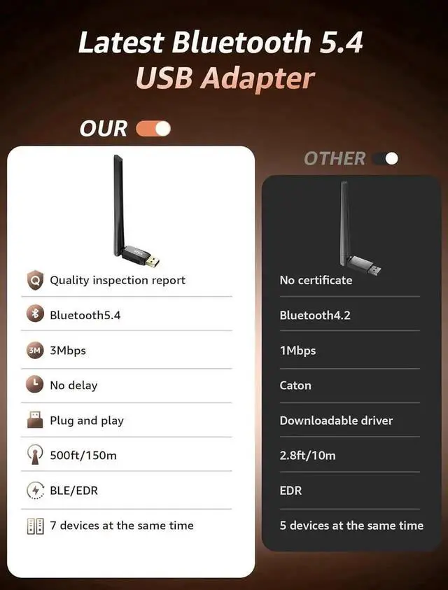Advanced Realtek Bluetooth 5.4 Chip, More Stable, Faster Speed, Farther Coverage, Plug in Play