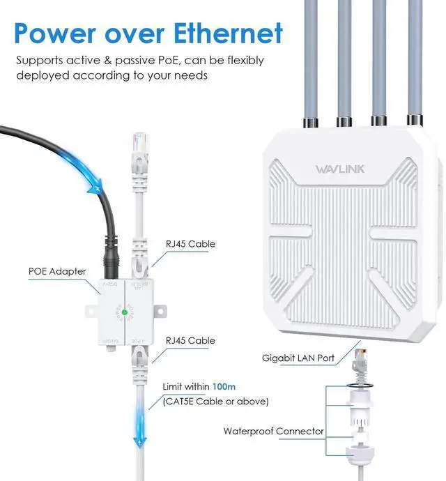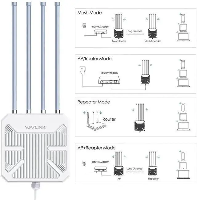 WAVLINK AX1800 Outdoor WiFi Extender, Dual Band Outdoor Access Point, Long Range WiFi Extender Signal Booster, IP67 Weatherproof, Active PoE, 4x8dBi Antennas, for Farm, Yard, Campsite, Starlink