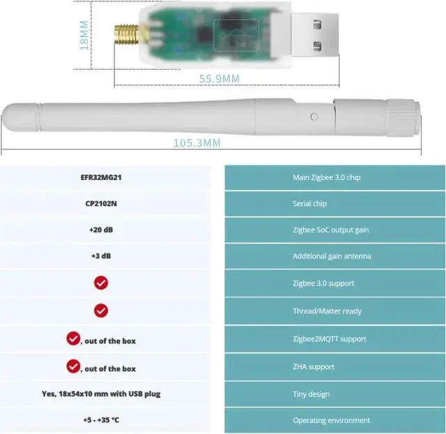 SMLIGHT SLZB-07 Zigbee 3.0 USB Coordinator - Pre-Flashed and Ready-to-Use Zigbee Adapter for ZHA Home Assistant and Zigbee2MQTT