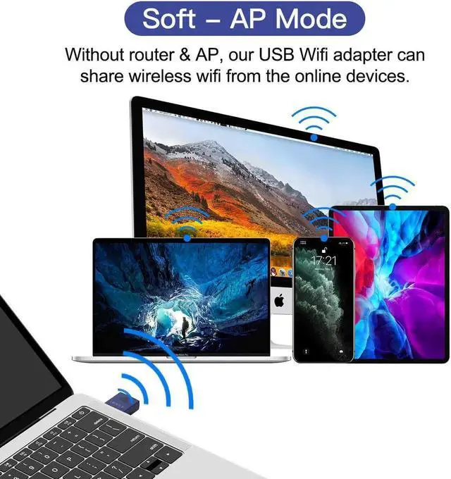 wifi adapters supports the latest Wi-Fi standard - IEEE 802.11ac, offering transfer rates that are faster than mostly similar adapters, turning a wired internet connection to a desktop PC or Laptop into a Wi-Fi hotspot.