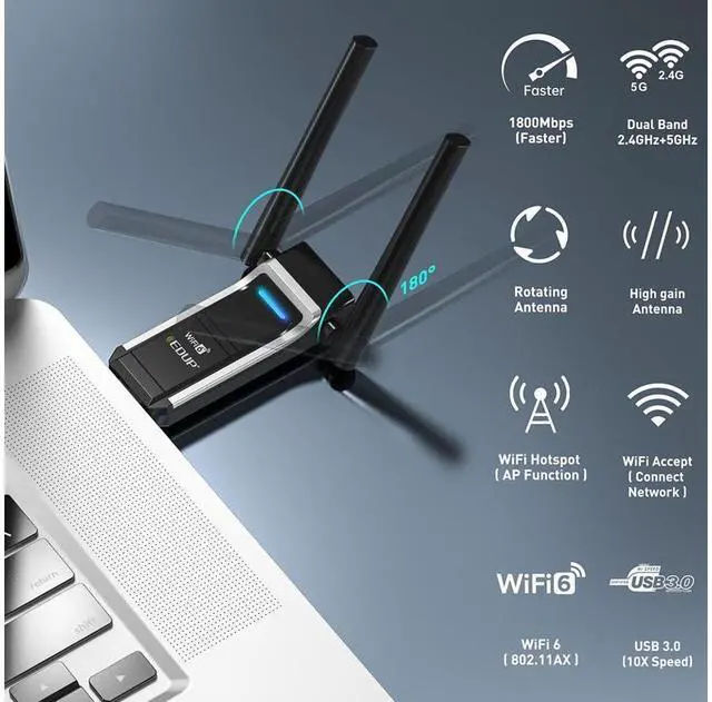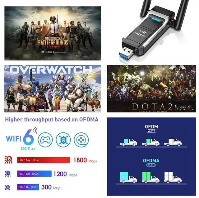 The latest WiFi6 AX 1800Mbps Adapter,Faster than WiFi5.
