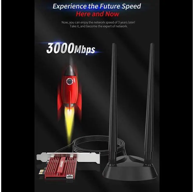 (3000Mbps is the theoretical speed, actually 2.4GH z 574Mbps + 5.8GH z 2400Mbps)