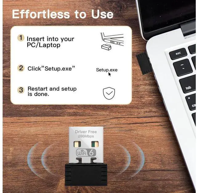 Nano Design: With an ultra-small size, this WiFi adapter brings unparalleled portability and convenience. Plug it into an available USB port of your laptop and enjoy WiFi 6 Internet access on the go