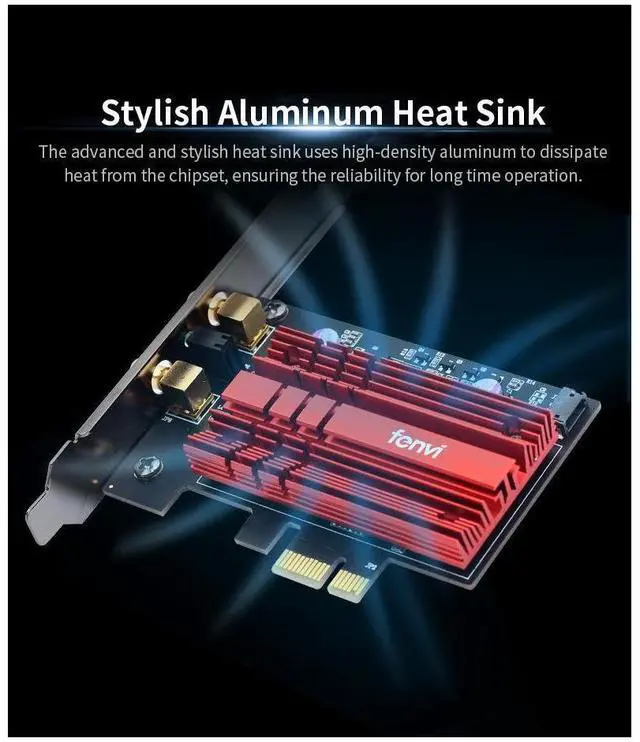 The FV-AX3000Pro adapter supports Bluetooth 5.2 and 802.11 ac/ax Wi-Fi 6, including wave 2 features such as 160MHz channels. delivering up to 2.4G bps and downlink MU-MIMO.
