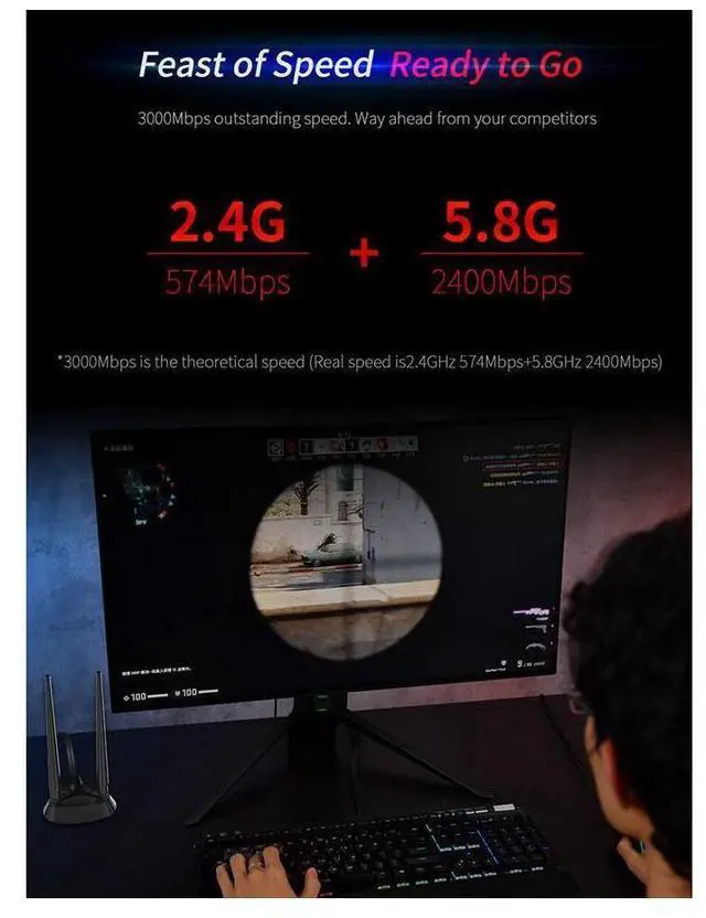 Dual Band 2.4G hz-300Mbps/5Ghz-2400Mbps;