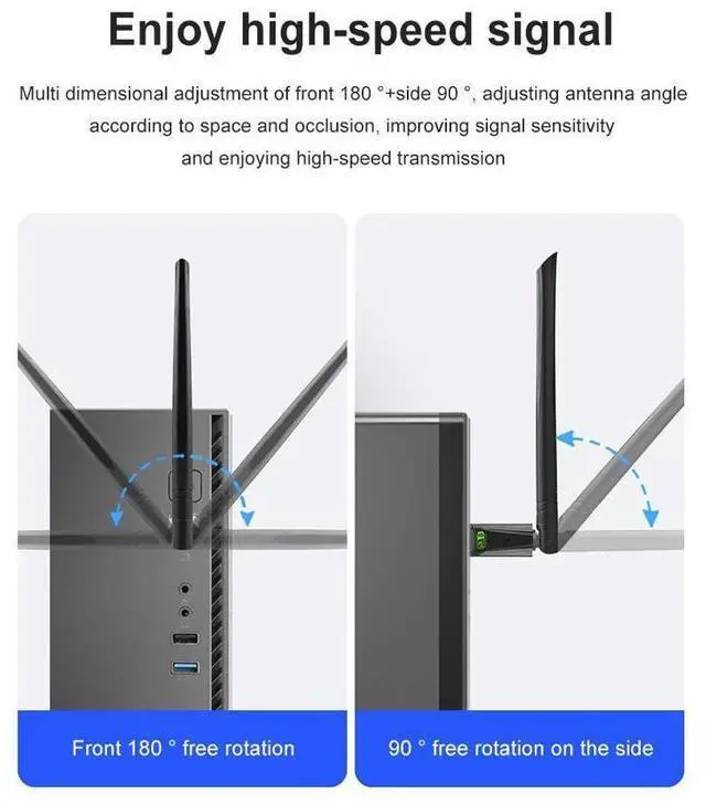 External Antenna: 5dBi high gain external antenna, which transmits signals farther, smoothes data transmission, and has better penetration. The signal is far away, which is superior to the built-in antenna network card.