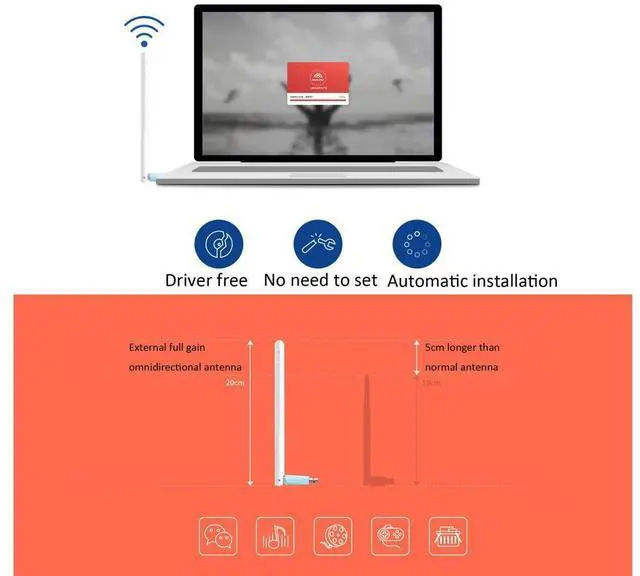 External high-gain omnidirectional antenna, wireless transmission and reception distance is longer, bringing a super user experience External antenna adopts flexible design and can be adjusted freely Orientation, enjoy high-speed at any time.
