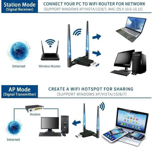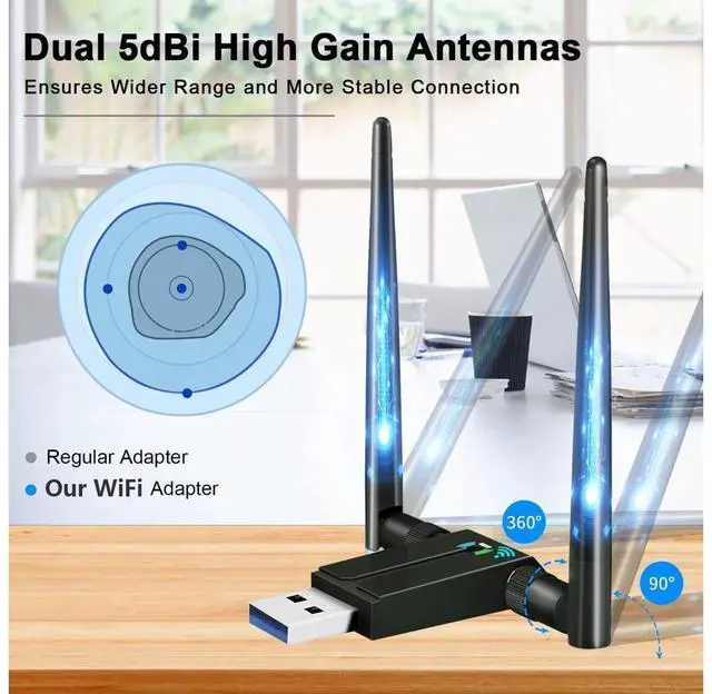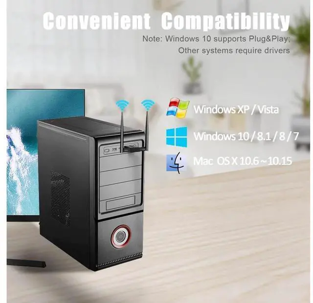 The PC WiFi Adapter with USB 3.0 can bring you 10x faster USB WiFi speeds and it is compatible with USB 2.0.