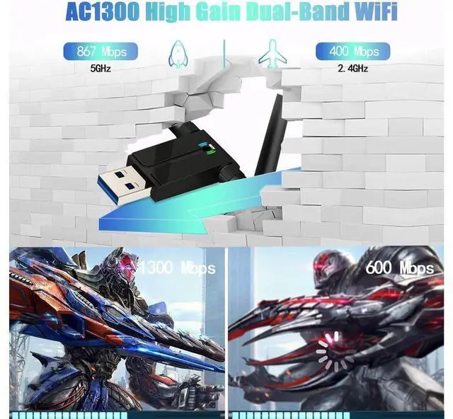 The upgraded Chip of 1300Mbps WiFi dongle provides faster transfer speeds and longer transmission distance.
