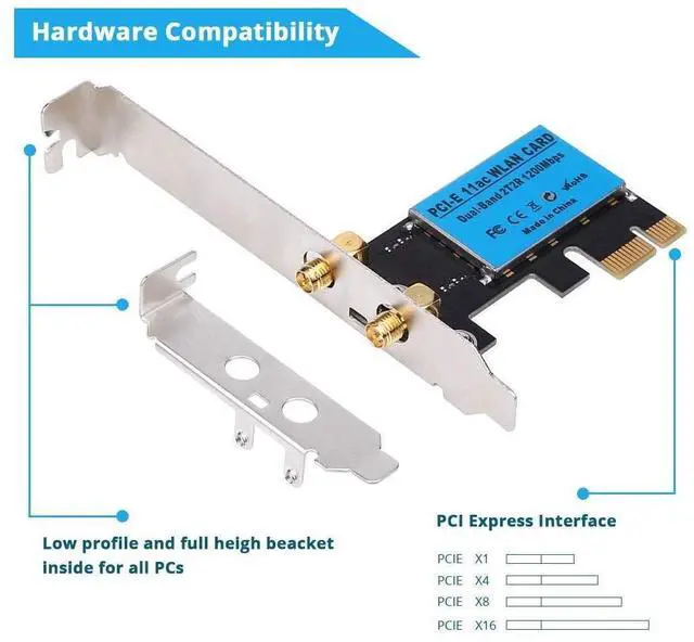 - Wireless network WiFi adapter card AC 1200Mbps, Wireless WiFi PCIe Network Adapter Card 5GHz/ 2.4GH z Dual Band PCI Express Network Card for Desktop/PC Gaming.