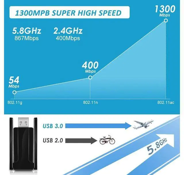 *High speed up to 1300Mbps. USB 3.0 Double Power Amplifier.