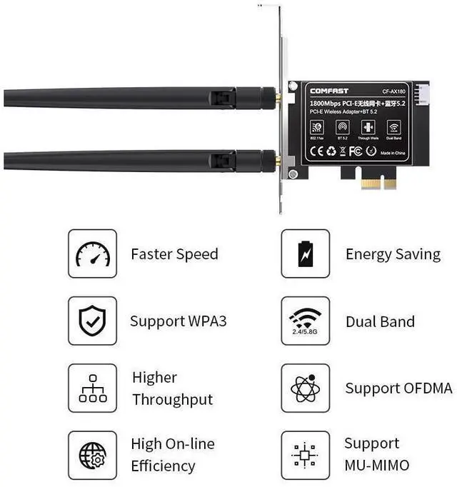 Wi-Fi 6 802.11ax. Support 2.4GHz&5.8GHz Dual Band