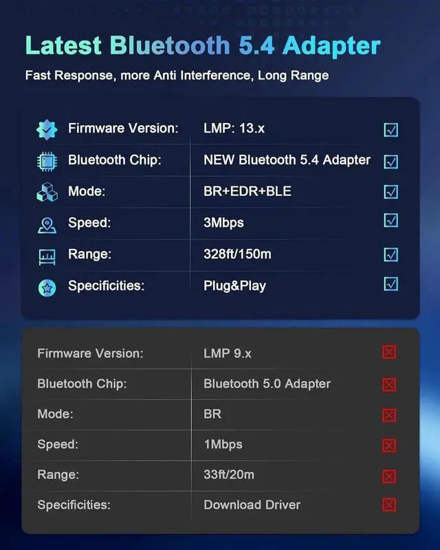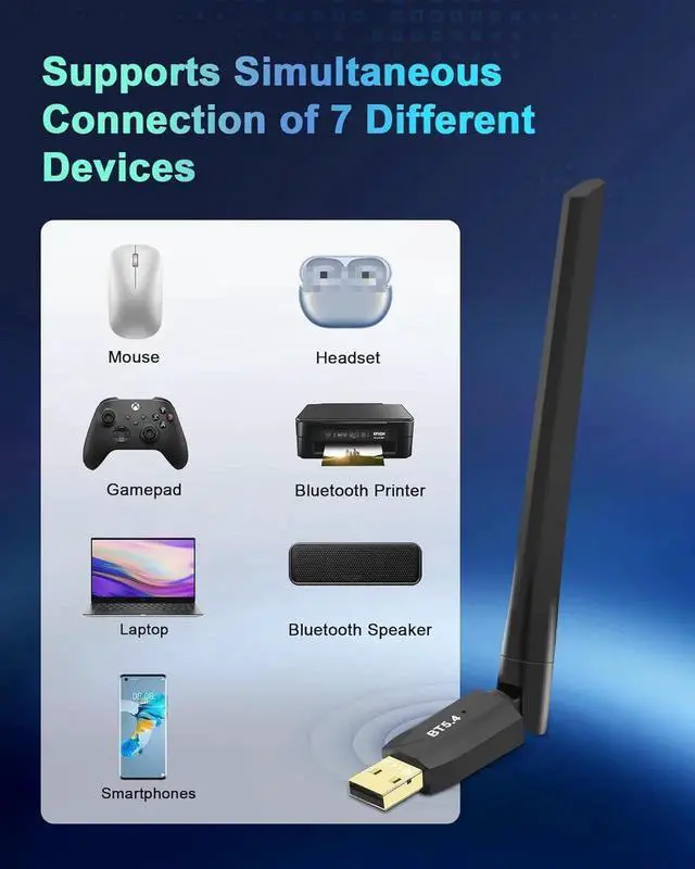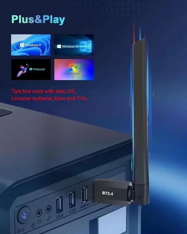 Plug and play, no need to install additional plug-ins, just plug in and go. Equipped with the latest Bluetooth 5.4 EDR (Bluetooth Low Power) technology and backwards compatible with Bluetooth V3.0/4.0/5.0/5.1/5.3.