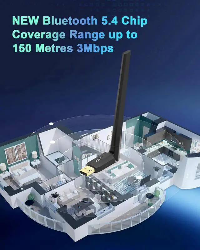 The antenna of the PC Bluetooth adapter rotates 180 degrees to provide better transmitting and receiving signals from any angle, with a longer range of up to 150 meters, so your Bluetooth device is less likely to be interrupted.