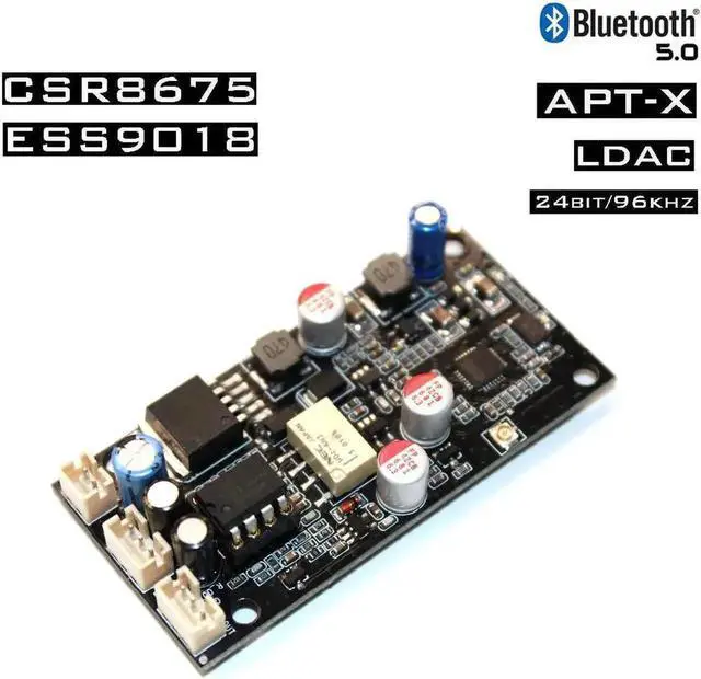 SQ875 Bluetooth audio receiver board adopts CSR8675 chip solution Bluetooth digital audio signal reception, I2S digital signal transmission to ESS9018 chip decoding, output analog audio signal through dual op amp filter amplification output. The SQ875 supports wireless Bluetooth reception and one AUX analog audio input for switching output. Lossless switching with relays will not have any effect on sound quality. The module defaults to AUX line mode, the switching mode is automatic switching, and Bluetooth is preferred. The SQ875 module is a high-level version that supports the LDAC protocol and supports a sampling rate of 24bit/96khz, which exceeds the -HD's 24-bit/48knz sampling rate.