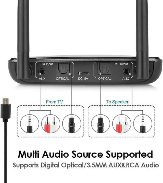 Up to 262ft Long Range&Dual AntennaUnobstructed signal transmission distance of up to 80m (262ft), and dual antenna design, a wide range of transmission, super stable and powerful, suitable for mobile phones, TV, TV box, MP3, MP4, speakers, wired headsets, Bluetooth headsets, laptops, amplifiers, car speakers, and Bluetooth speakers or headphones that rely on A2DP Bluetooth profiles for smooth operation.