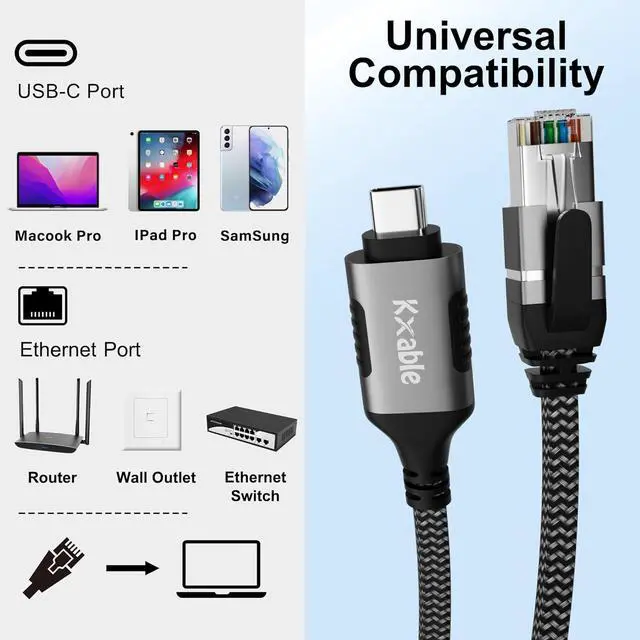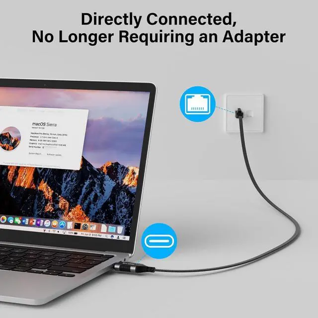 A Novel Solution: No driver required, more convenient to use than adapters, this USB C to RJ45 ethernet cable connects your computer or device directly to a router, modem, or network switch for network connection. Plug and play, no need to connect through a combination of USB C to RJ45 adapter and internet cable. In addition, if your computer' s RJ45 port is damaged, this cable is also an excellent choice for you. (Note: Not console cable. )